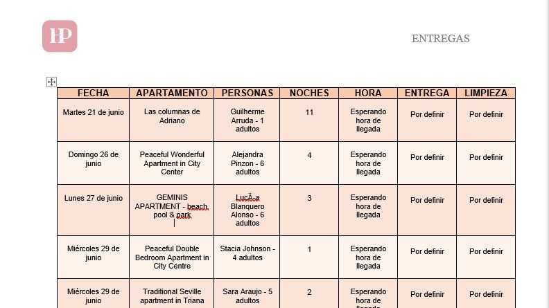- Generar un informe con el que te podrás organizar con tus apartamentos